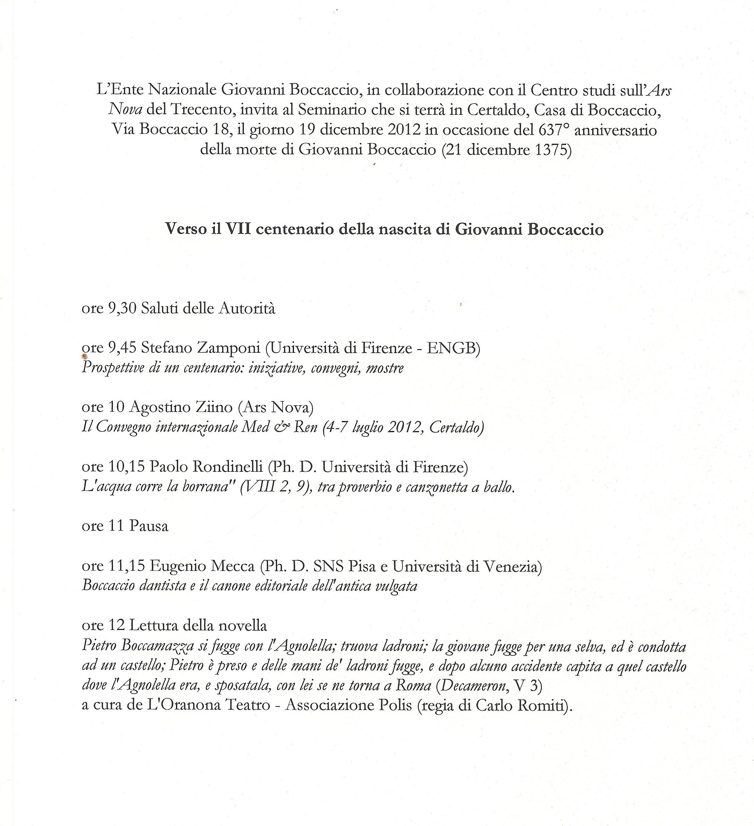 Seminario in occasione del 637° anniversario della morte di Giovanni Boccaccio