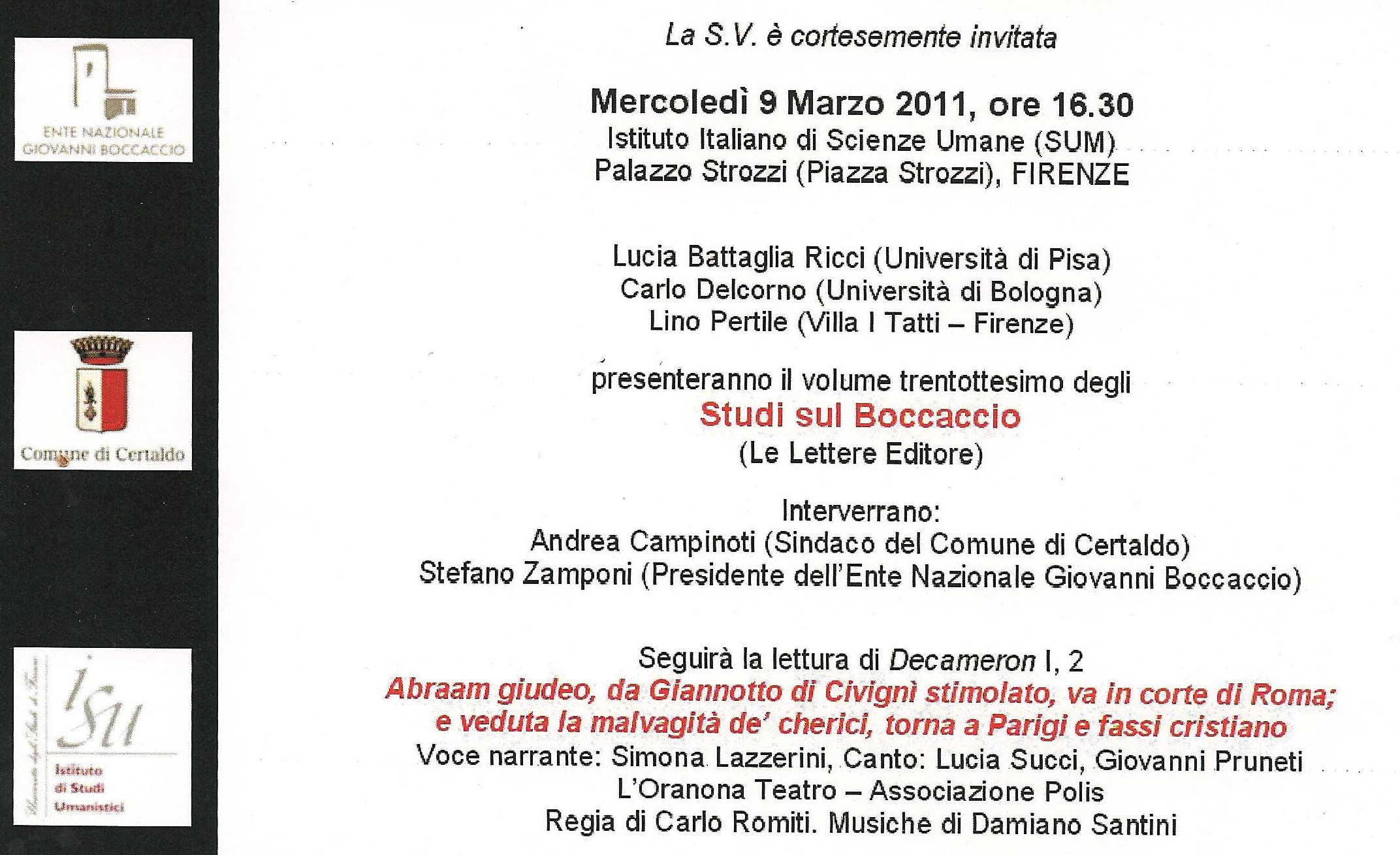 Presentazione "Studi sul Boccaccio"