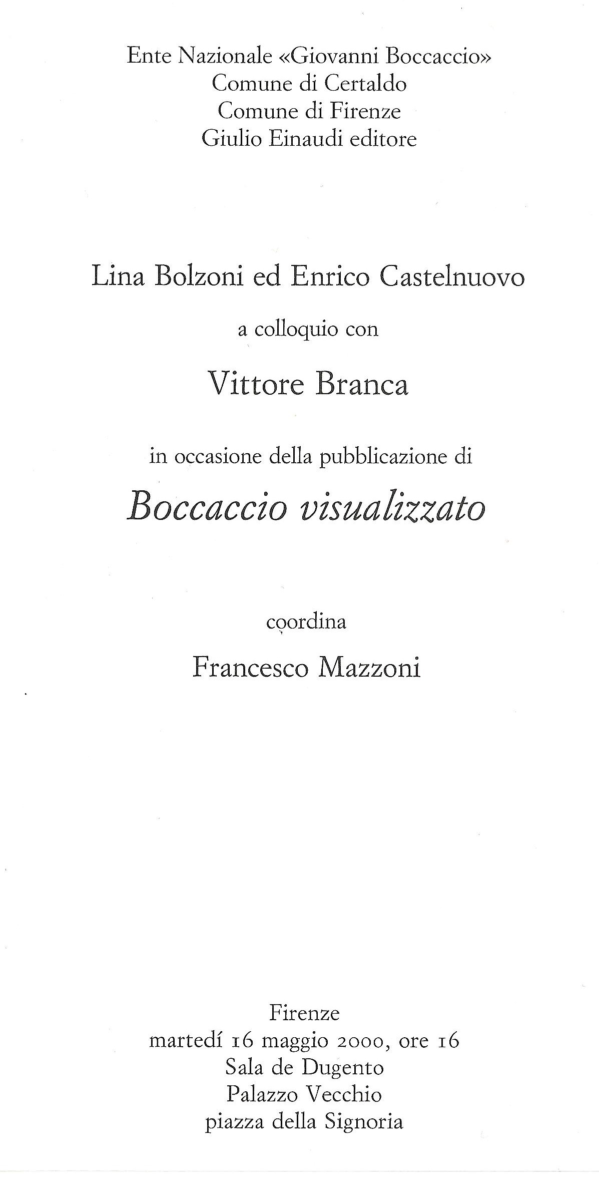 Lina Bolzoni ed Enrico Castelnuovo a colloquio con Vittore Branca in occasione della pubblicazione di