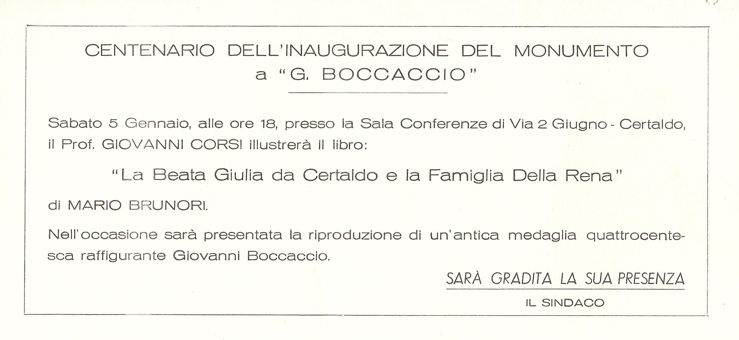 Nel centenario dell'inaugurazione del monumento a Giovanni Boccaccio, presentazione del libro