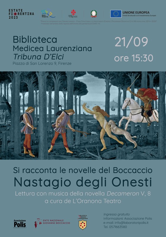 Lettura a cura dell'Oranona Teatro della novella "Decameron" V, 8 presso la Biblioteca Medicea Laurenziana 21 settembre 2023