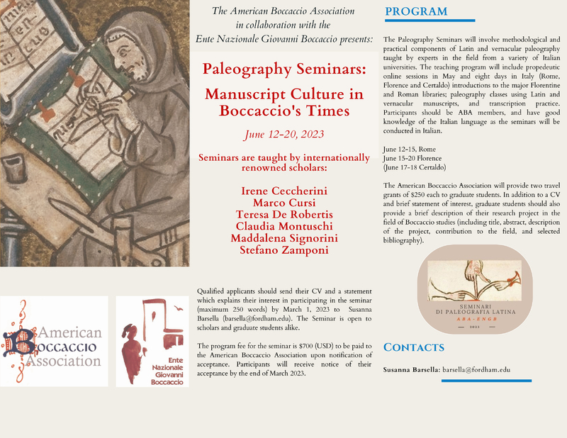 The American Boccaccio Association in collaboration with the ENGB presents The Paleography Seminars, that will involve methodological and practical components of Latin and vernacul…