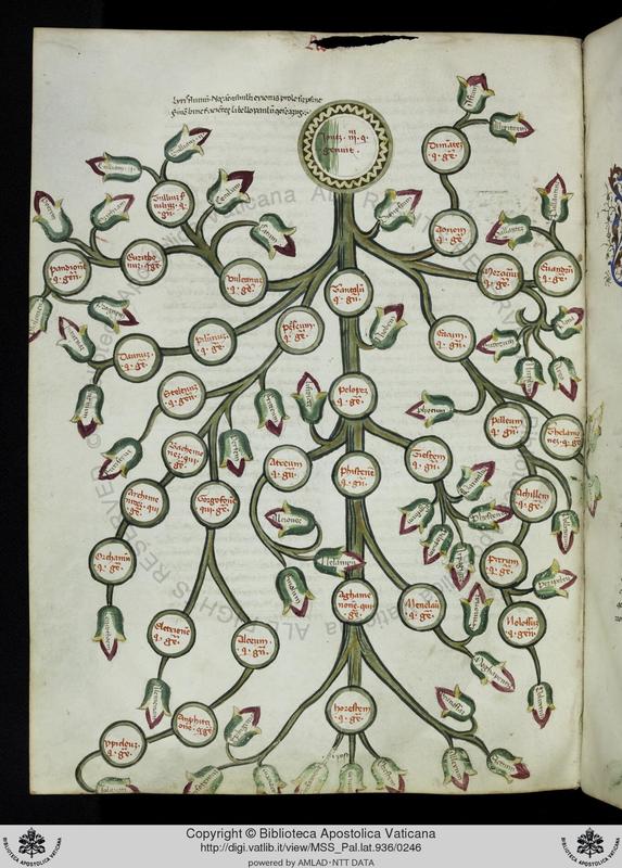 Città del Vaticano, BAV, Pal. lat. 937, f. 70r. Albero genealogico di Dardano.