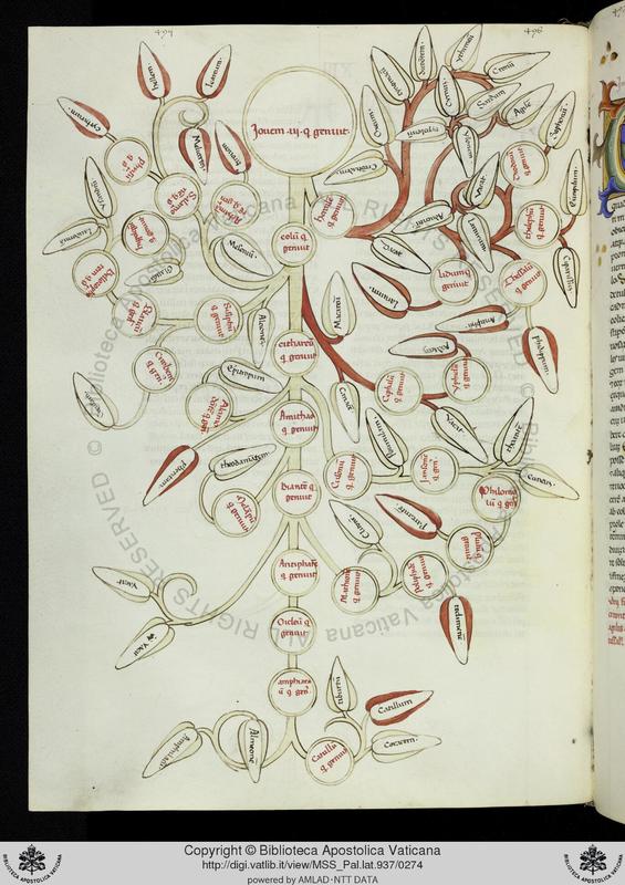 Città del Vaticano, BAV, Pal. lat. 936, f. 120v. Albero genealogico di Giove terzo.