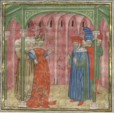 Miniatore lombardo (1450 c.), Il re si rivolge ad Ascalion