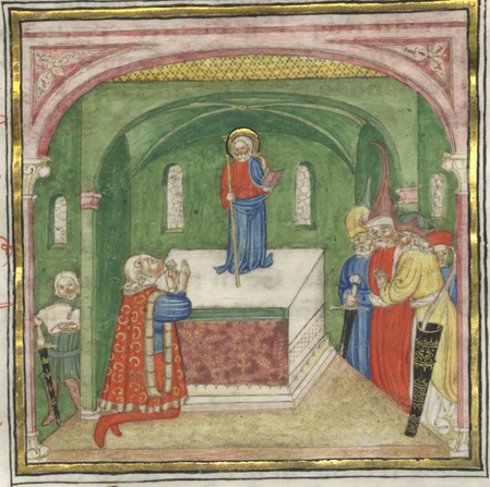 Miniatore lombardo (1450 c.), Lelio prega dinanzi all'altare di San Giacomo