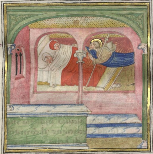 Kassel, Universitätsbibliothek Kassel, Landesbibliothek und Murhardsche Bibliothek der Stadt Kassel, 2° poet. et roman. 3, f. 5r. San Giacomo appare nella camera da letto di Lelio …