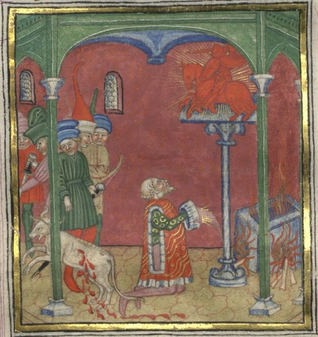 Miniatore lombardo (1450 c.), Re Felice offre sacrifici a Marte per la vittoria su Lelio