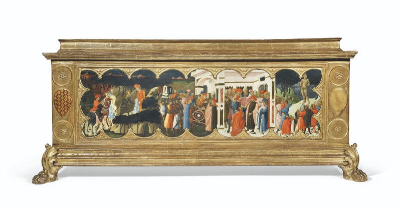 Ambito di Benozzo Gozzoli (1445 c.), Griselda consegna la figlia al messo di Gualtieri; il messo consegna la neonata al marchese; Gualtieri ripudia Griselda, la quale è costretta a tornare alla casa paterna; durante il banchetto Gualtieri rivela la verità a Griselda