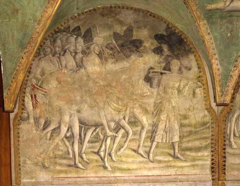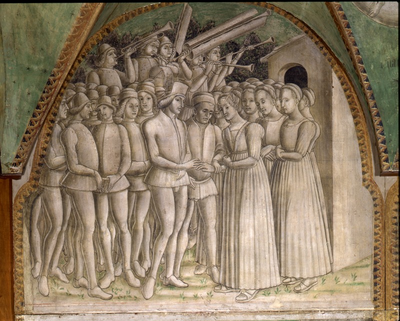 Milano, Pinacoteca del Castello Sforzesco, inv. n. 1347/08. Giannucole unisce Gualtieri e Griselda in matrimonio alla presenza della corte del marchese. Affresco strappato proveni…
