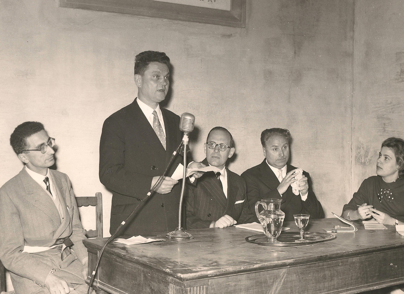 Il giorno 6 ottobre 1957 Casa Boccaccio fu riaperta al pubblico dopo la distruzione del 1944 . Nell'immagine il saluto istituzionale del Vice Sindaco di Parigi
