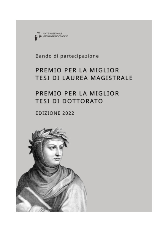 L'Ente Nazionale Giovanni Boccaccio, l'Associazione Letteraria Giovanni Boccaccio e il Comune di Certaldo bandiscono un premio per la migliore tesi di laurea magistrale e la miglio…