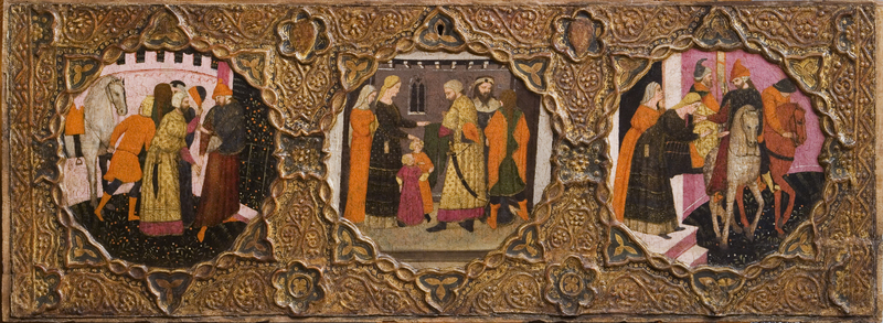 Firenze, Museo Nazionale del Bargello, Mobili n. 160. Messer Torello accoglie nella città di Pavia il Saladino travestito da mercante; accompagnata dai figli, Adalieta, moglie di T…