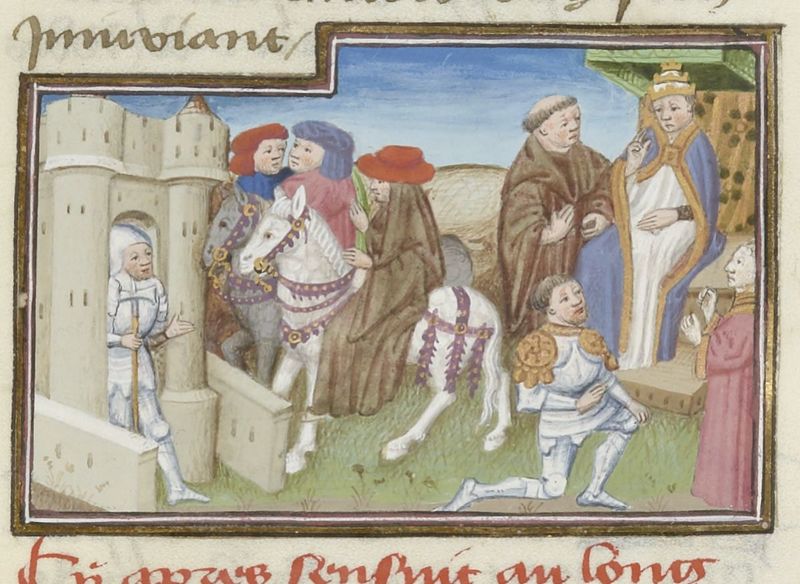 Scuola del Maestro del Duca di Bedford (1430 c.), Ghino di Tacco cattura l'abate di Clignì; l'abate intercede per Ghino presso il Papa