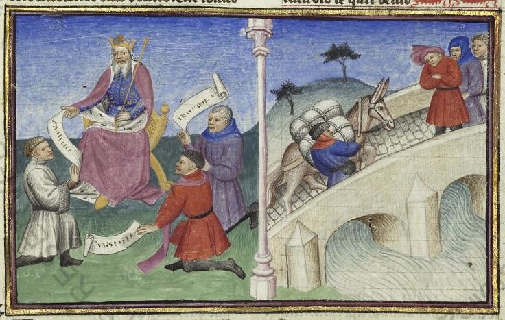 Maestro della Cité des Dames (1414-1419), Salomone dispensa il proprio giudizio; Giosefo e Melisso attraversano il ponte dell'Oca
