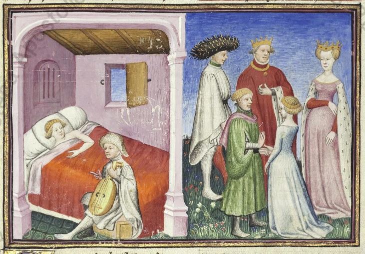 Maestro della Cité des Dames (1414-1419), Lisa parla con il cantore Minuccio; il re fa sposare la fanciulla