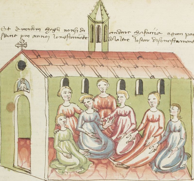 Miniatore fiorentino (1427-1430), Sette fanciulle si riuniscono in Santa Maria Novella