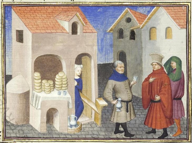 Maestro della Cité des Dames (1414-1419), Il fornaio Cisti offre il suo vino a Geri Spina