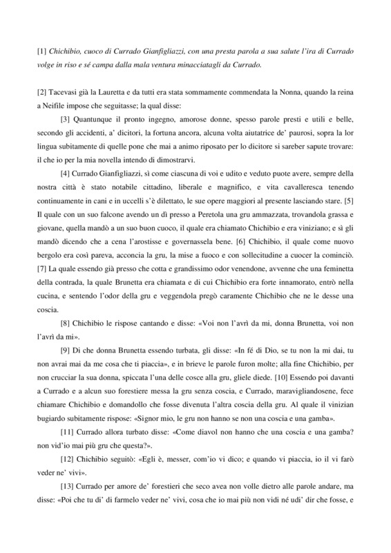 Città del Vaticano, Biblioteca Apostolica Vaticana, Pal. lat. 1989, f. 186v. Il copista del manoscritto, datato 15 giugno 1414, è Laurent de Premierfait. Il cuoco Chichibio offre a…
