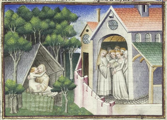 Maestro della Cité des Dames (1414-1419), Alibech giace con l'eremita; Alibech si sposa con Neerbale