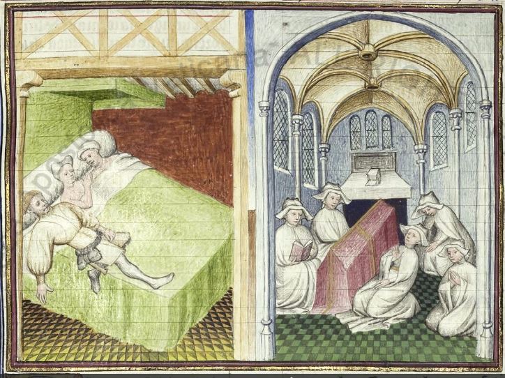Maestro della Cité des Dames (1414-1419), Girolamo muore sul letto di Salvestra; Salvestra muore dinanzi alla bara di Girolamo