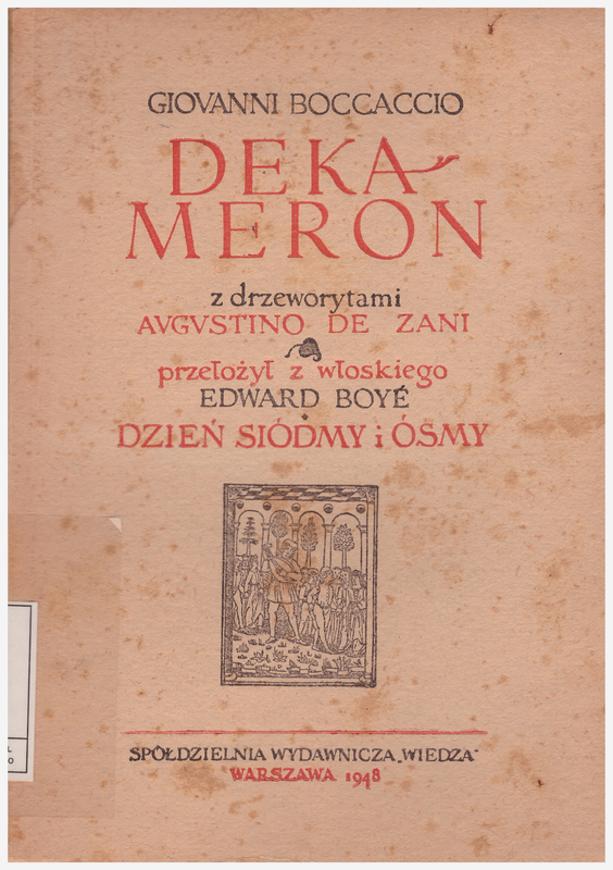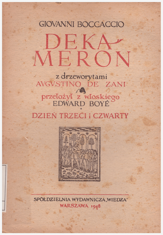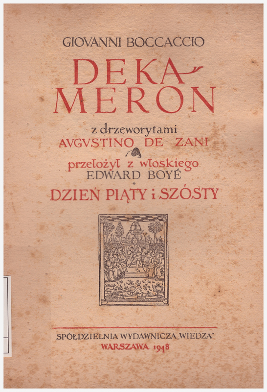 Dekameron. I / Przełożył z włoskiego Edward Boye ; tekst poprawił, uzupełnił i przedmową opatrzył Mieczyslaw Brahmer
