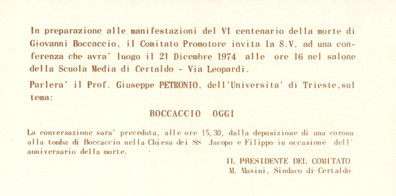 VI Centenario della morte di Giovanni Boccaccio - Manifestazioni conclusive