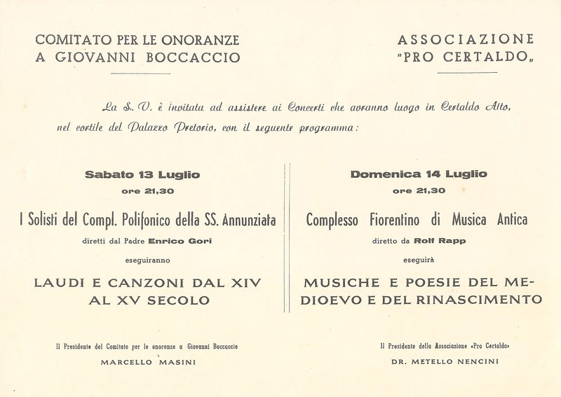 Concerti in occasione nel VI Centenario della nascita di Giovanni Boccaccio13 - 14 luglio 1963