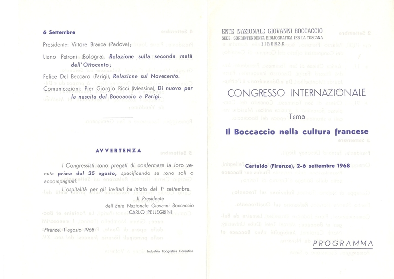 Congresso internazionale in occasione del VI Centenario della morte di Giovanni Boccaccio22 - 25 maggio 1975