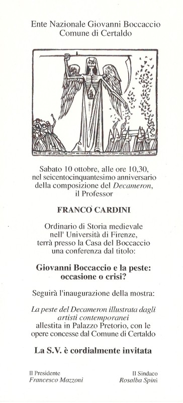 Nel 650° anniversario della composizione del "Decameron" conferenza del prof. Franco Cardini e inaugurazione della mostra "La peste del Decameron illustrata dagli artisti contempor…
