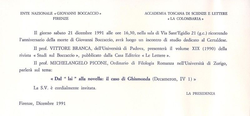 Incontro di studio a ricordo dell'anniversario della morte di Giovanni Boccaccio21 dicembre 1991