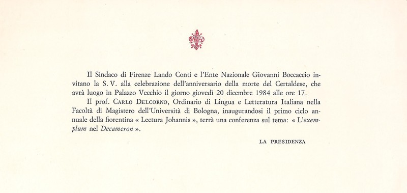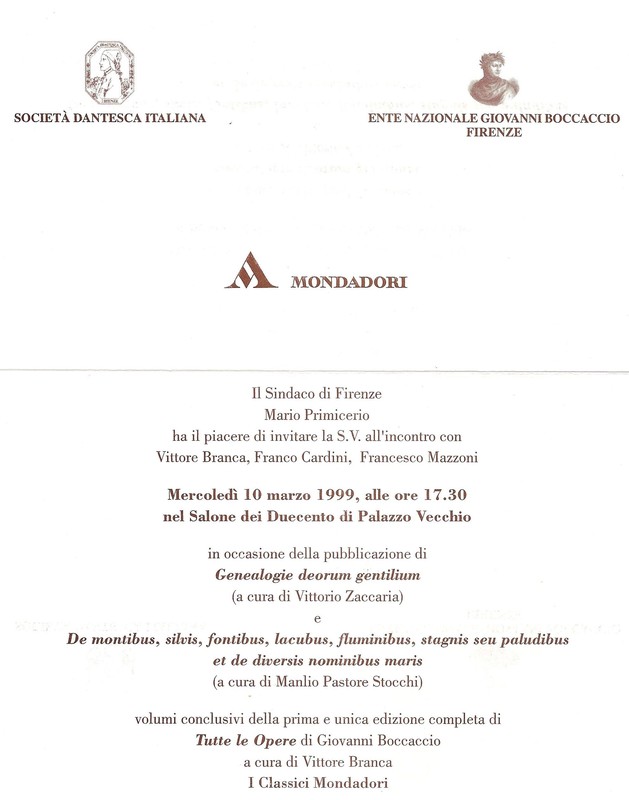 Incontro di studio a ricordo del 720° anniversario della morte di Giovanni Boccaccio27 gennaio 1996