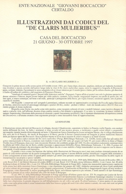 Mostra di miniature dei testi di Giovanni Boccaccio21 giugno - 30 ottobre 1997