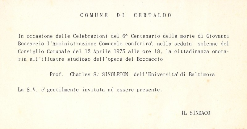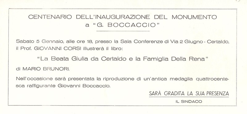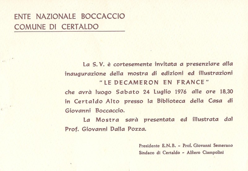 In occasione delle celebrazioni del VI Centenario della morte di Giovanni Boccaccio12 aprile 1975