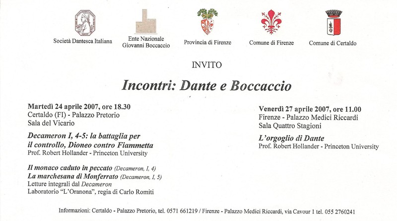 Conversazioni del prof. Robert Hollander24 e 27 aprile 2007