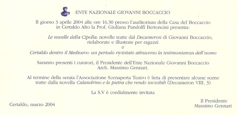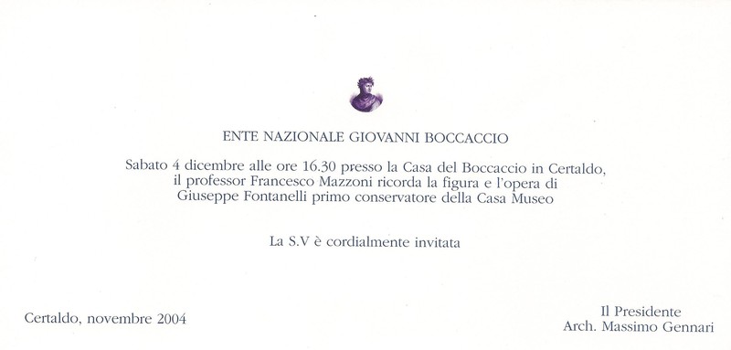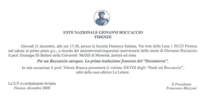 A ricordo del 625° anniversario della morte di Giovanni Boccaccio21 dicembre 2000