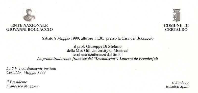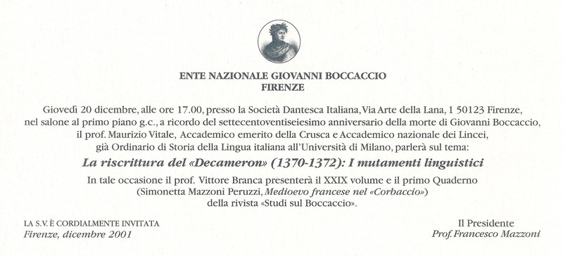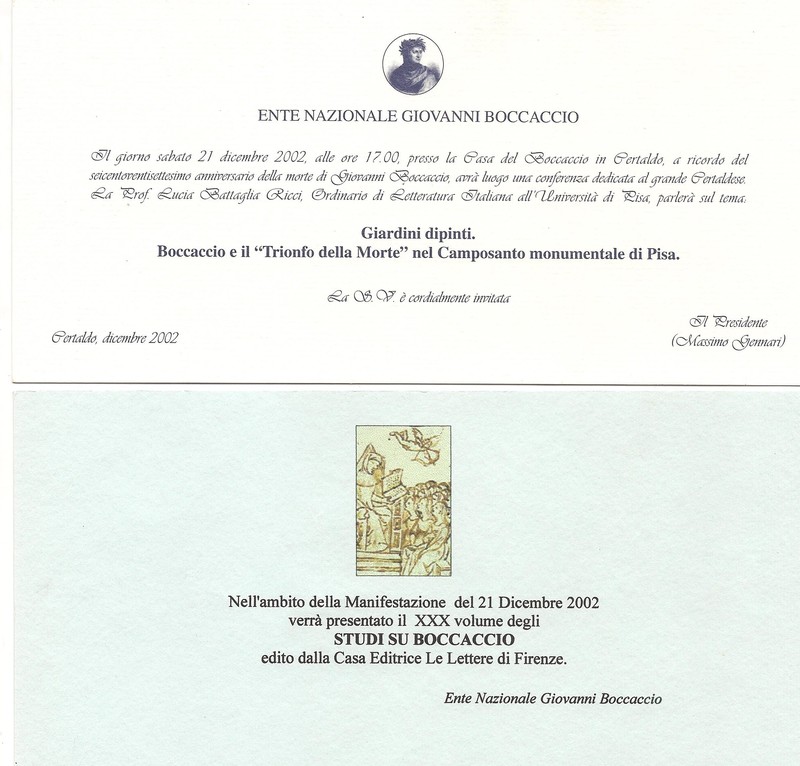 Conferenza della prof. Lucia Battaglia Ricci (Università di Pisa) in occasione del 627° anniversario della morte di Giovanni Boccaccio21 dicembre 2002
