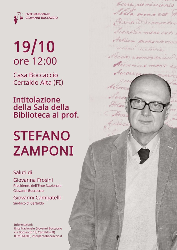 Cerimonia di intitolazione della Sala della Biblioteca di Casa Boccaccio al prof. Stefano Zamponi 19 ottobre 2024