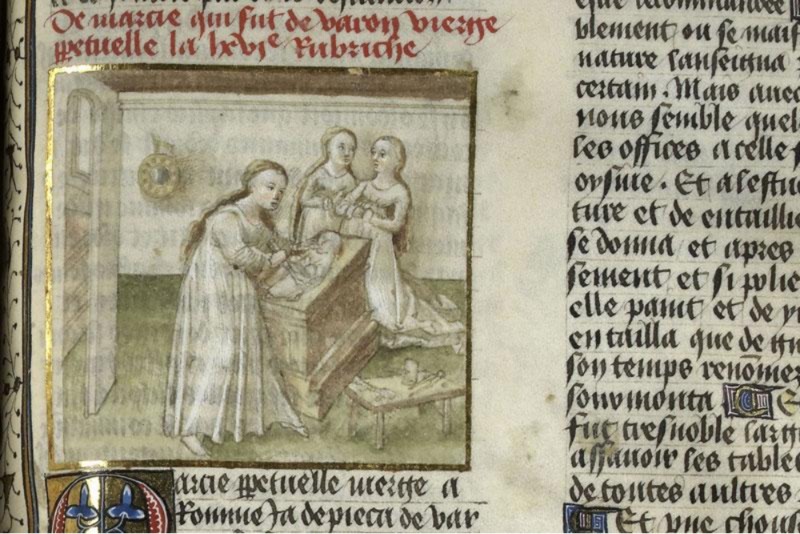 Miniatore parigino (1410-1415), Semiamira circondata dalle matrone e da un legista