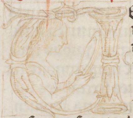 Cambridge (Mass.), Harvard University, Houghton Library, Richardson 41, f. 9r. Figura femminile, all'interno dell'iniziale figurata I(syphyles).