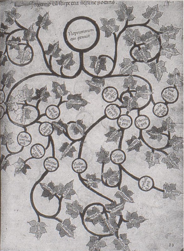 Firenze, Biblioteca Riccardiana, Ricc. 870, f. 34r. Albero genealogico di Demogorgone.