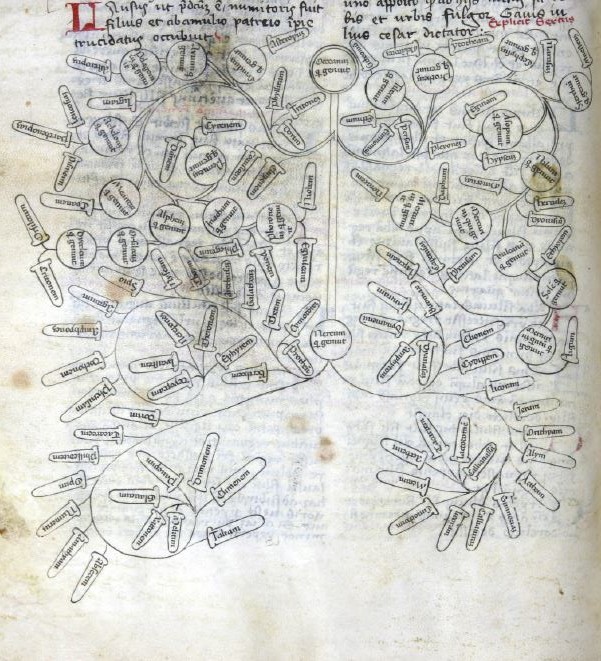 València, Universitat de València. Biblioteca Històrica, BH Ms. 291, f. 128v. Albero genealogico di Giove terzo.