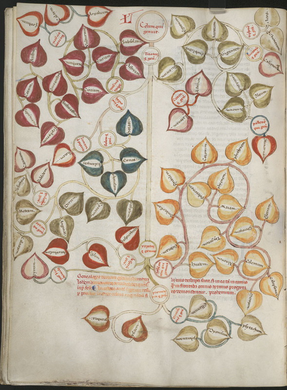 Chicago, University of Chicago Library, 100, f. 48v. Albero genealogico di Celo e Titano.