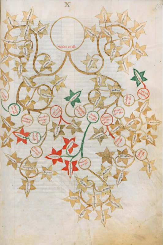 Parigi, Bibliothèque Nationale de France, Lat. 7877, f. 38r. Albero genealogico di Celo.