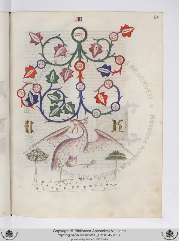 Città del Vaticano, BAV, Urb. lat. 450, f. 63r. Albero genealogico di Celo.