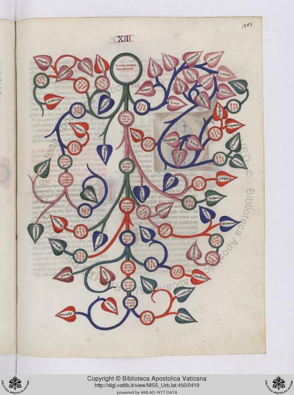 Città del Vaticano, BAV, Vat. lat. 2033, f. 19r. Albero genealogico di Celo.