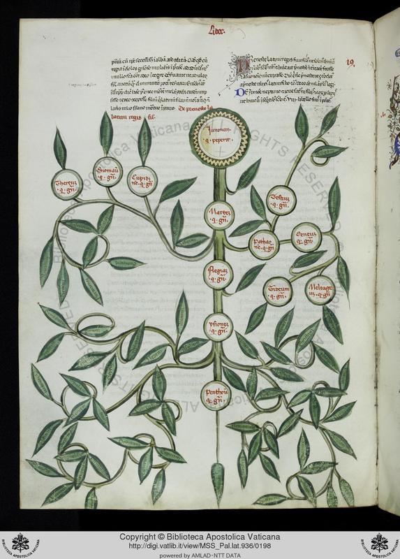 Città del Vaticano, BAV, Pal. lat. 937, f. 25r. Albero genealogico di Etere.