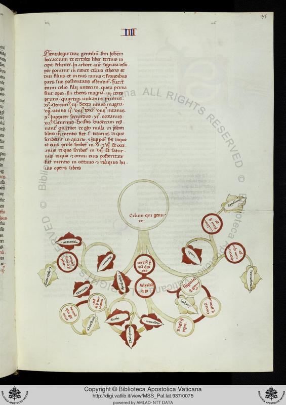 Città del Vaticano, BAV, Pal. lat. 936, f. 120v. Albero genealogico di Giove terzo.