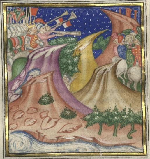 Miniatore lombardo (1450 c.), Il re guida l'esercito in battaglia