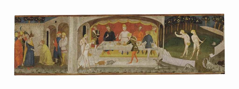 Ambito di Benozzo Gozzoli (1445 c.), Griselda consegna la figlia al messo di Gualtieri; il messo consegna la neonata al marchese; Gualtieri ripudia Griselda, la quale è costretta a tornare alla casa paterna; durante il banchetto Gualtieri rivela la verità a Griselda